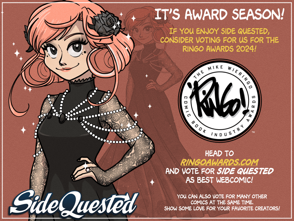 So, if you have about 3 minutes free of your time, please consider nominating Side Quested as best Webcomic for the Ringo Awards!